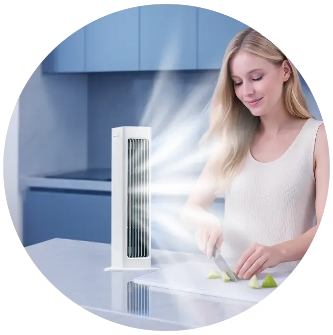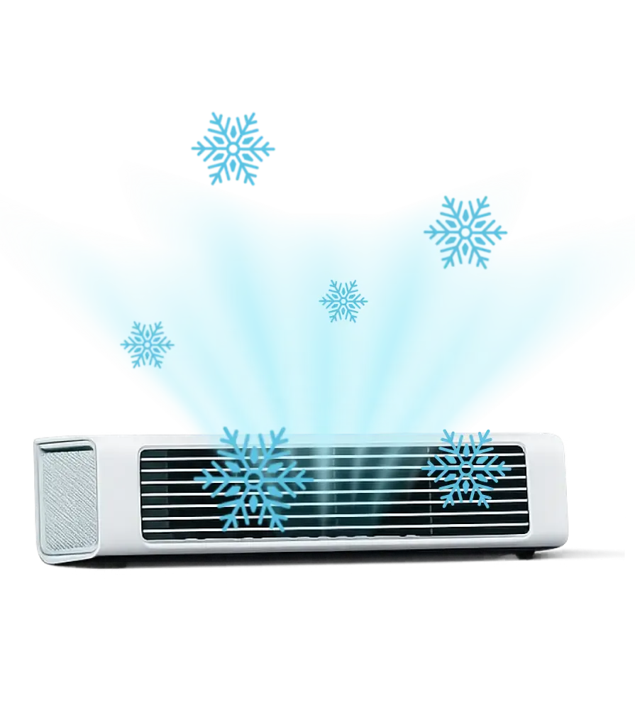 Regular fans just move hot air around. The Qinux BreezaMax actually cools the air. Its bladeless design and automatic oscillating vents provide a steady, refreshing breeze instantly — all without noise, dry air, or high electricity costs.