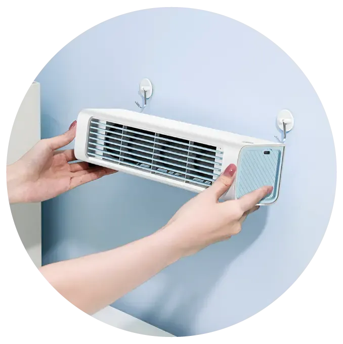 Cool any space without installation or messy wires. Place it on your desk, next to your bed, or mount it on the wall — no tools required. Compact and easy to use, it cools your room in seconds. Plus, it’s ultra-quiet, making it perfect for sleeping, working, or enjoying your favorite shows without distractions.